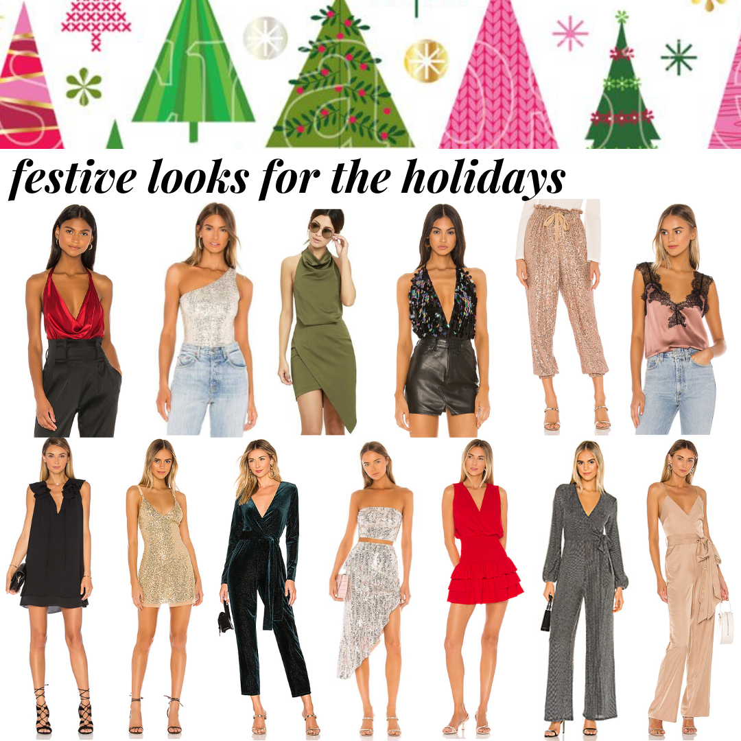 RED BODYSUIT // GLITTER BODYSUIT // GREEN DRESS // SEQUIN BODYSUIT // SEQUIN PANTS // LACE CAMI // LBD // SEQUIN DRESS // VELVET JUMPSUIT // SEQUIN SKIRT SET // RED DRESS // GLITTER JUMPSUIT // SILK JUMPSUIT