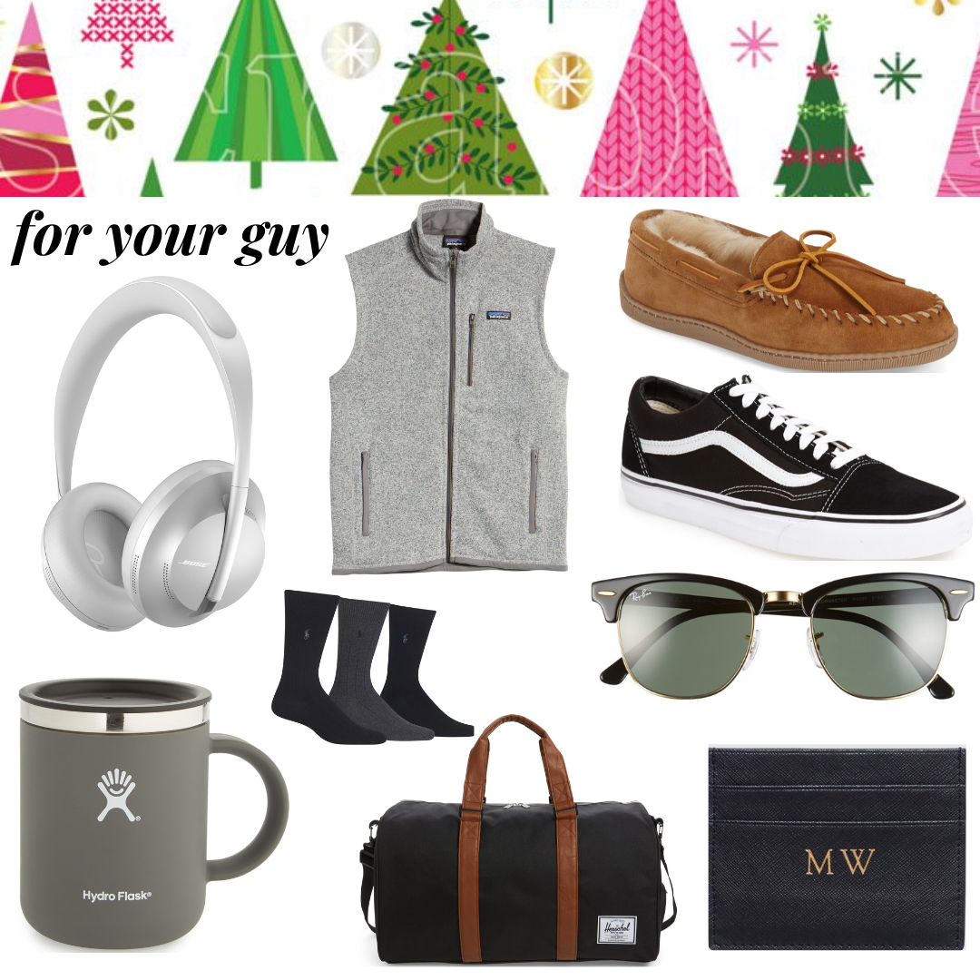 Series · November 7, 2019GIFTS FOR YOUR GUY HEADPHONES // VEST // SLIPPERS // COFFEE MUG // SOCKS // VANS // RAYBANS // WEEKENDER // PERSONALIZED WALLET Turn on your JavaScript to view content Share this:Click to share on Twitter (Opens in new window)Click to share on Facebook (Opens in new window) Related